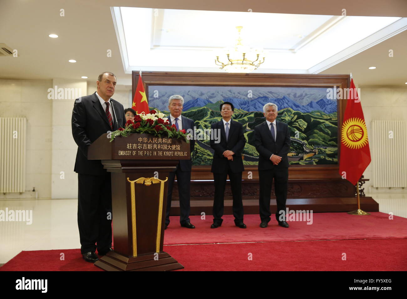 Bishkek Kyrgyzstan 21st Apr 2016 Russian Ambassador To Kyrgyzstan Andrey Krutko 1st L Addresses An Event In Bishkek Kyrgyzstan On April 21 2016 The Jubilee Event Marking The 20th Anniversary Of Signing